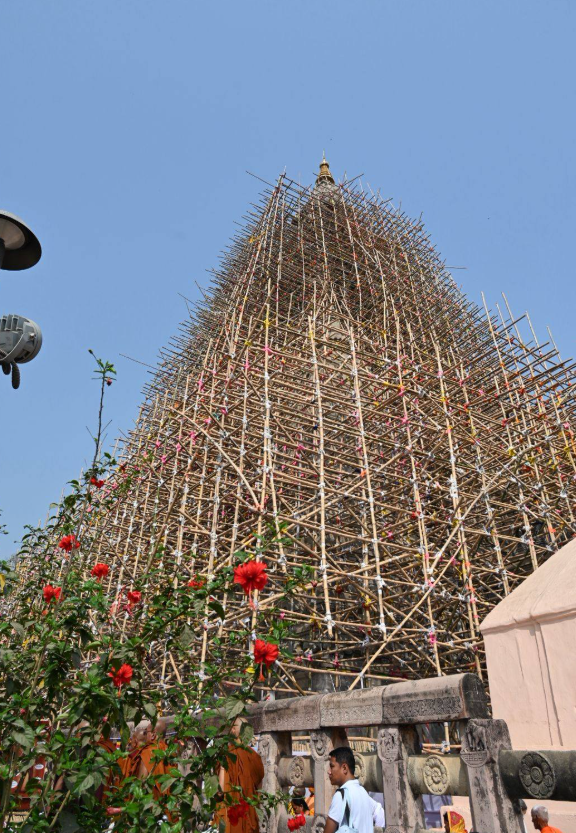 Visitors to Bodh Gaya will find non-invasive bamboo scaffolding erected around the temple to “facilitate safe and careful access”. The Thai volunteer group is working in close collaboration with the Archaeological Survey of India (ASI) due to the significance of the temple structure and premises. A team from the ASI is monitoring the works and ensuring that the delicate structure is cleaned without any damage.